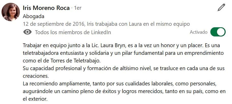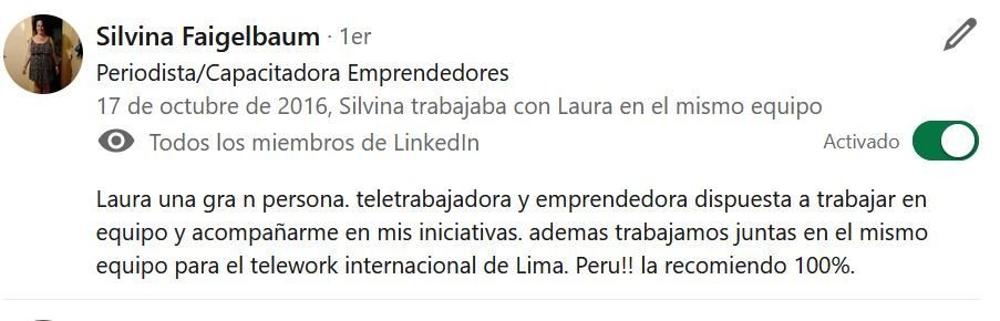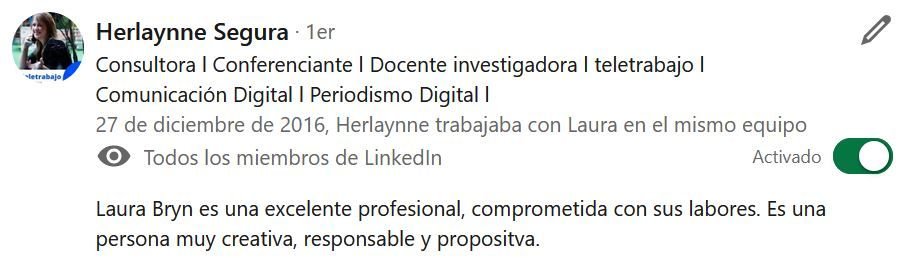 Consultora en teletrabajo. Integrante del equipo de estrategia digital de la Academia de Transformación del Trabajo de Latam.
